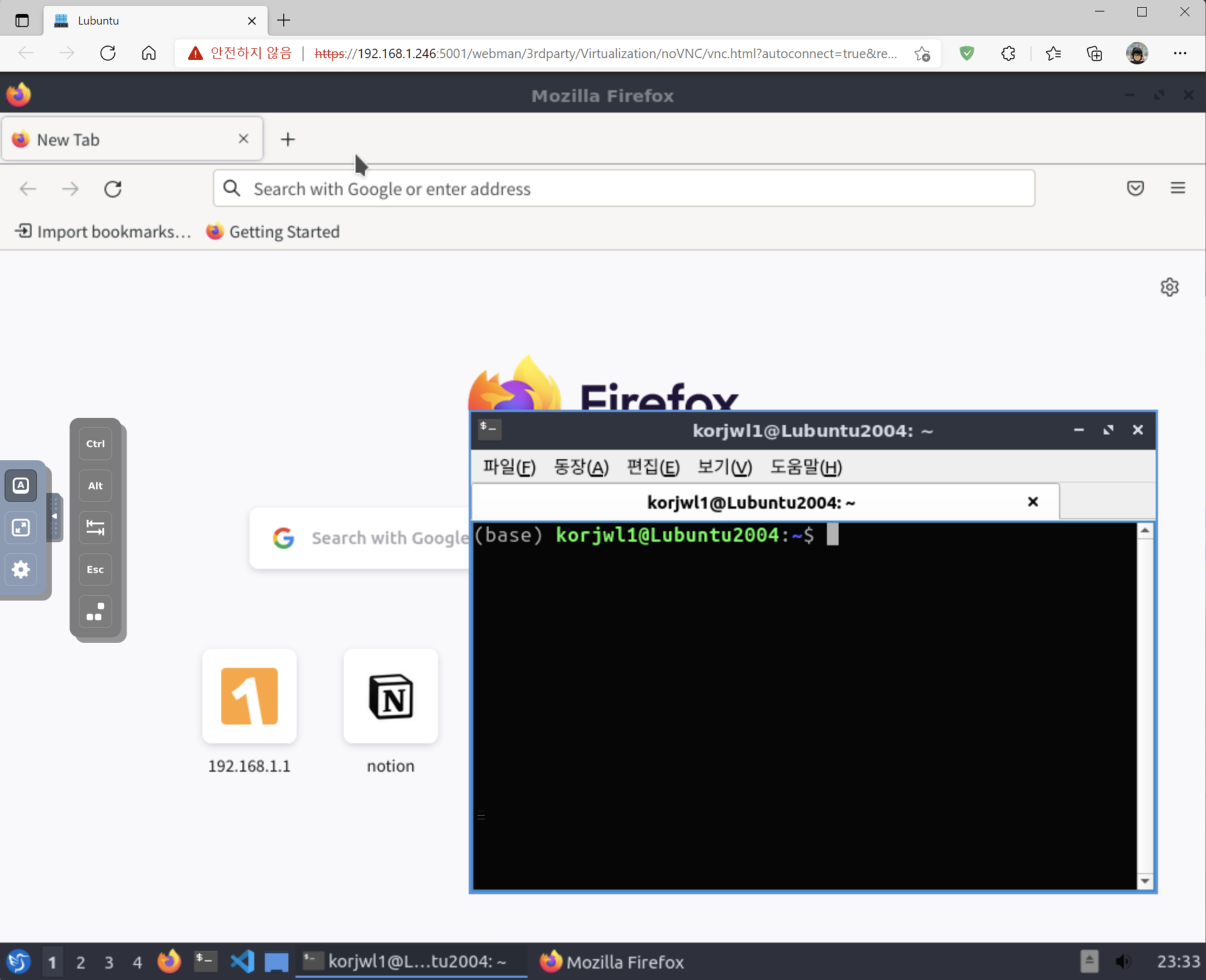 기왕 아이패드 때문에 Lubuntu를 올린 김에 여기에 온갖 코딩 환경과 Code-Server 또한 마련해두었는데, 덕분에 그토록 원하던 개인 데스크탑에 아무 코딩 관련 툴을 깔지 않는다는 목적 역시 달성할 수 있었다. 윈도우에서 C나 파이썬 등을 코딩하는 분들은 모두 알겠지만 라이브러리 문제 등 때문에 결국 리눅스가 필요해져 WSL 등으로 타협 볼 때가 있을 것이다. 하지만 WSL도 어쨌든 어느 정도 한계가 있기에 돌아가지 않는 프로그램도 있고 그렇다고 추가 파티션에 직접 리눅스를 까는 것도 여간 귀찮은 게 아니다. 이러한 이유 때문에 골머리 앓던 분들이라면 VMM을 통한 리눅스 환경 구축은 매우 큰 매력으로 다가올 것이다.